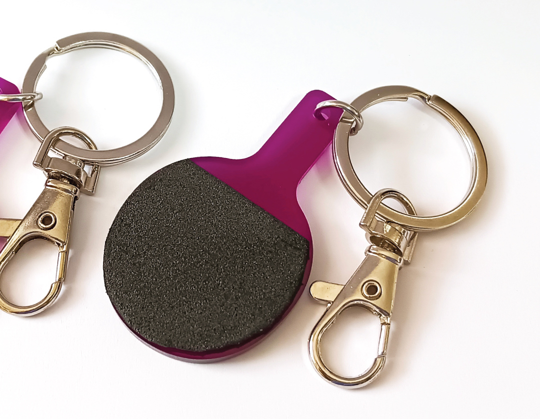 พวงกุญแจ แผ่นอะคริลิคไม้ปิงปองจิ๋ว มีก้ามปูสำหรับห้อยกระเป๋า